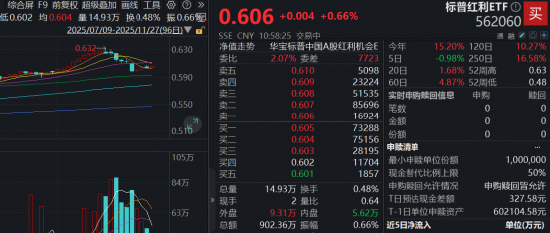 “能追牛、能扛熊”的标普红利ETF(562060)红盘震荡,场内价格现涨0.66%,站稳5日均线,涨幅领先于主流红利。成份股涨超6%,涨超5%,、和等高股息、低估值红利资产多数飘红。